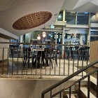 Das Innere austauschbar zu jedem Schnellrestaurant der Welt. Hier nicht in Quietschfarben, sondern in Braun- und Grautönen. Eher praktisch als gemütlich und auch nur leidlich bequem. Der Tisch wackelte. Eine der so beliebten, übergroßen „Glühbirnen“ war erloschen. Im Hintergrund spielte kaum wahrnehmbar Musik, denn die Lüftung rauschte. Es zog. Immerhin gute Luft.