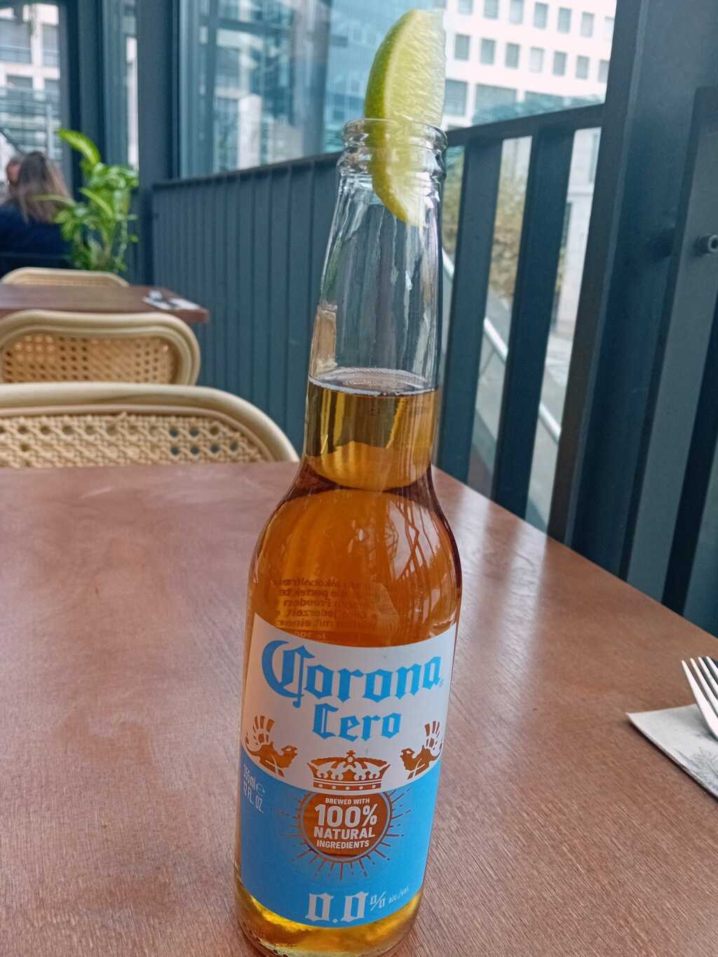 Auf der Lunch-Karte findet sich Mainstreamtaugliches wie Pizza, Pasta, Bowls. Die üblichen Verdächtigen. So wähle ich die einzige (vermeintlich) regionale Speise: Käsespätzle (11,80 Euro als Mittagstisch). Und da die Lunch-Karte nur kleine 0,2-Liter-Getränke offeriert, bestelle ich von der separaten Getränkekarte eher verzweiflungshalber ein alkoholfreies Bier mit etwas mehr Volumen. Serviert wird ein Corona cero (4,90 Euro) mit Limettenspalte. Oje, ob das der Sache dienlich ist? In Nullkommanichts landet auch das Mittagsgericht auf meinem Tisch. Optisch adrett, doch haptisch und geschmacklich leider nicht mein Ding. Sowohl das schlonzige Spätzlekonglomerat (meine zeitlebens spätzleschabende Mutter würde sich bei diesem Anblick im Grab umdrehen) als auch die Salatbeilage sind förmlich in Saucen ertränkt. Tapfer schlürfe ich alles in mich hinein. Um alles aufzutupfen, muss ich aus der Not heraus zu allen Servietten greifen, die an diesem Tisch ausliegen.