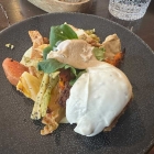 Die bunt gemischte „kalte Platte“ schmeckte uns allen ausgezeichnet. Brokkoli, Weißkohl nach Kimchiart, Blumenkohl, Karotten Oliven, Ziegenkäse, Hummus, Kohlrabi, gelbe Bete, weiße und schwarze Bohnen, Schalotten. Jedes Gemüse war anders gewürzt und mariniert. Ein sehr gelungenes Aromenspiel.