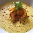 Die Teile vom Winterkabeljau waren wie Gulaschstücke geschnitten, sie waren nur leicht mariniert und zeigten deutliche Aromen, die Spargelstücke waren leicht gegart und hatten leichten Biss, die Maracujastücke waren in der Creme und dem Schaum verarbeitet.