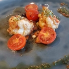 Hatte ich weiter oben im Text nicht etwas von meinem Prüfstein bei Erstbesuchen in italienischen Gastros erwähnt ? Nun, die Carbonara war hier ja nicht zu haben. So mussten als Verlegenheits-Prüfstein diesmal die "Scampi" herhalten. Was folgte, muss ich etwas ausführlicher schildern, denn es entbehrte nicht einer gewissen Komik, die streckenweise fast schon loriothafte Züge aufwies. Ich fragte zunächst unsere Servicekraft, ob die zu den Linguine angebotenen Scampi um echte Scampi handeln würde, oder ob man hier den fast schon üblichen Schmu triebe und dem Gast anstelle von Scampi irgendwelche Garnelen unterjubeln würde. Sie konnte mir auf meine Frage keine Antwort geben und verschwand deshalb in der Küche, um diesbezügliche Erkundigungen einzuziehen. Kurz darauf kam sie wieder an unseren Tisch mit der Meldung:"Es sind in jedem Fall echte Scampi!" Ihr fast auf dem Fuss folgte der Betreiber des "Bellaggio", in Personalunion auch Küchenchef; ein impulsiver Mensch mit typisch süditalienischem Temperament, baute sich an unserem Tisch neben mir auf und erklärte:"Bei den vielen Stammgästen, die ich hier habe, kann ich es mir gar nicht leisten, auf meiner Karte falsche Angeben zu machen. Meine Sampi sind Scampi, und basta!" So ganz traute er seinen Angaben aber wohl doch nicht, denn keine drei Minuten später stand er erneut bei uns am Tisch und hielt mir auf der flachen Hand zwei der sogenannten "Scampi", die natürlich alles andere als Scampi waren, unter die Nase. Was er da angebracht hatte, waren zwei Exemplare der Black Tiger Garnele, Kategorie 8/12 (d.h 8 bis 12 Stück gehen auf ein engliches Pfund, will heissen auf 454 Gramm). An ihrer Streifung die ihnen auch zu ihrem Namen verholfen hat, sind sie ganz eindeutig als Penaeus monodon zu identifizieren. Ganz im Gegensatz dazu kommt der Kaisergranat Nephrops norvegicus, auch unter dem Begriff Scampo daher: sehr leicht zu erkennen an seiner rötlich-orangenen Farbe, der langgestreckten Körperhaltung, den Dornenreihen an seiner Panzeroberseite und natürlich an seinen Scheren und dem für Hummerartige typischen Fächer am Schwanzende, die er genau wie sein großer Bruder Homarus, der Hummer, hat. Meine kleine Lehrstunde hatte den Chef doch ziemlich beeindruckt; er verschwand nämlich in seiner Küche und schnappte sich dort wohl direkt sein Handy, um per Internet meine Angaben zu überprüfen. Und schon war er wieder bei uns am Tisch und legte sein Handy vor mich hin; was ich auf dem Display sah, war eine wunderschöne Aufnahme von einem Kaisergranat mit kurzem Erklärungstext darunter. Der Chef bedankte sich vielmals für meine "Lehrstunde"; ich empfahl ihm, den Begriff "Scampi" aus der Karte zu streichen und ihn durch "Riesengarnelen" zu ersetzen. Wir schüttelten uns die Hände und er verschwand mit meiner Bestellung aus der Kategorie "Pasta al forno (mit Käse überbacken) in der Küche. So ganz war er mit dem Thema aber doch nicht durch; bevor unsere Gerichte kamen, erschien er nämlich erneut bei uns am Tisch und stellte mit breitem Grinsen ein Tellerchen vor mich hin:"Einmal falsche Scampi aufs Haus!" Zwei Black Tiger Garnelen, auf den Punkt gegrillt und bestens abgewürzt, umgeben von mehreren Cherry-Tomaten. Eine der beiden Garnelen (bestimmt waren es die beiden, die mir der Chef zuvor im Rohzustand auf der flachen Hand präsentiert hatte) reichte ich natürlich an meine liebe Frau weiter, die Tomätchen bekam sie sowieso.