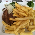 Gyros und Leber mit Pommes, Zaziki und Salat (10,50 €)