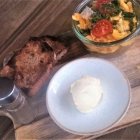 Natürlich wären noch verschiedene andere Frühstücksvarianten im Angebot, süss oder herzhaft. Dazu auch Müsli oder Säfte. Der Kaffee stammt aus einer kleinen Manufaktur am Rande der Schwäbischen Alb, so wie auch bei vielen anderen Zutaten auf Regionalität geachtet wird. Im Angebot sind Backwaren jeglicher Machart, Kuchen, Torten, Kleingebäck, Pizza, Vesper, Snacks, Marmeladen, Heiss- und Kaltgetränke etc. pp. Im grosszügigen Gastraum kann man zwischen rustikalen Holztischen und -bänken, sowie kleineren runden Tischen und Kaffeehausstühlen wählen. Im momentan noch etwas kargen Aussenbereich sitzt man schön schattig. Allerdings rauscht häufig die Schönbuchbahn vorbei und auch der rege Verkehr zwischen Böblingen und Tübingen lässt sich nicht ganz ausblenden. Aufgrund der speziellen Lage kehren hier viele Handwerker und im Industriegebiet Beschäftigte ein – für sie ist die Genusswerkstatt ein willkommener Kantinenersatz. Wir haben uns wohlgefühlt und sind bestens bedient worden, die Speisen waren absolut frisch und schmackhaft, die Sauberkeit vor Ort kann nicht mehr übertroffen werden, auch die Toiletten sind bestens gepflegt und in Schuss. Was will man mehr? Die Genusswerkstatt ist auch für Familien mit Kindern (der „Babycino“ ist übrigens kostenlos!) und für Menschen mit Einschränkungen zu empfehlen.