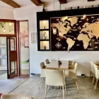 Ein schöner "Eyecatcher" ist dabei mit Sicherheit die Wand gegenüber der Eingangstür, bei der man bewusst den sonst weißen Putz weggelassen hat und somit die typische Backsteinoptik der Lübecker Innenstadt-Häuser zu Tage kommt. Dunkelbraun sind der Bereich um die beiden großen Fenster, die Theke/Bar und die ebenfalls erhaltenen Deckenbalken getönt.