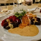 Die an sich vernünftigen, aber wenig inspirierten Blattsalate waren eiskalt. Die Tomatenviertel hart und völlig geschmacklos. Ja, ist denn schon wieder Januar? Wo man wohl im September so ausdruckslose Ware herbekommt. Beschämend für ein 5 Sterne-Haus!