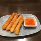 Die Frühlingsrollen waren jetzt für den Preis doch ein wenig klein geraten. Sie waren knusprig und nicht fettig , auch schön heiß. Wir denken das alles dabei war wie angekündigt, das etc. können wir nicht sagen. Es war alles sehr klein gehäckselt so dass wir nicht viel erkennen konnten. Vom würzen her waren sie sehr neutral gehalten . Die süß-sauer-Soße vermuten wir mal als Sweat-Chili-Soße die es überall als Fertig Produkt gibt. Geschmacklich gab sie nicht viel her, da haben wir schon bessere woanders bekommen.