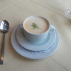 Krebssuppe als Vorspeise wurde gewählt und Besteck + Papier-Serviette (in ordentlicher Qualität) gebracht, die Suppe nach knapp 10 Min. serviert. Die Krebse waren Krabben, die Suppe mit einem Sahneklecks oben drauf serviert, solide gut zubereitet, geschmacklich gut, rund und lecker, sicher auf Basis einer Hummerpaste zubereitet. Durchaus einen Empfehlung wert. 4,80 €- das PLV passt.