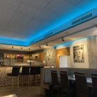 Im vorderen Bereich gibt es die Schenke und einen Tresen mit Barhockern dazu.