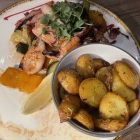 Es schmeckt auch noch prima. Die Schweinefiletbestandteile des Pola Pola (20,90 Euro) hätten allerdings noch ein paar Minuten länger gebraucht und das vermutlich selbstgemachte Ajvar hätte ruhig etwas pikanter ausfallen dürfen. Dafür sind die Tuben der gegrillten Calamari (23,90 Euro) butterzart, die kleinen Tentakel herrlich kross, die dazu servierten Rosmarinkartoffeln schön würzig. Beim Grillgemüse sind wir allerdings nicht so sehr Fan von Zucchini, dafür überrascht eine rote Dekosauce, die man erst für Ketchup halten könnte, laut Karte jedoch Rote-Bete-Creme ist. Dazu munden das Benediktiner Hefe alkfrei (4,90 Euro) und das Weissweinschorle (4,50 Euro). Als Fehlgriff entpuppt sich allerdings die Blutorangen-Limo (5,90 Euro) – so pappsüss, dass vermutlich nur Kinder eine Freude daran haben können.