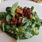 Bereits der mit Knusperspeck und Buttercroutons garnierte Feldsalat wusste dank schmackiger Vinaigrette vollends zu überzeugen. Da wurde aber mal ein richtig feiner Essig zum Anrühren des sehr gut abgeschmeckten Salatdressings verwendet. Mit zupackender Säure und subtiler Süße veredelte er das erntefrische, grüne Blattgold vom Feld auf köstliche Art und Weise.