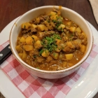Dafür war das eigentliche Gulasch, darunter verstehe ich schon große Fleischstücken, eher klein gemengselte Stückchen Fleisch die irgendwo übrig waren. Dafür schmeckte sie aber sehr gut, vor allem die Soße war sehr herzhaft und würzig. Die Kartoffeln sehr weich, was ich mag. Nur das Fleisch war halt nicht so. Obenauf noch etwas getrockneter Schnittlauch, fertig war die Kartoffel- äääh Gulaschsuppe.