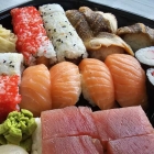 Ich notierte Nigiri mit Lachs, Thunfisch und Jakobsmuschel. Maki, Inside Out-Roll, Special Roll mit Lachs, Thunfisch, Fischrogen und unterschiedlichen Füllungen.