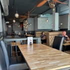 Auch blieb das alte, gemütliche Ambiente (4) erhalten. Die modernen Deckenlampen mit Kohlefadenlampen fügen sich gut ein. Auch die neuen Tische und sehr bequemen Stühle passen optisch gut dazu. In den alten Brauereikeller wurde eine funktionell und optisch gute Toilettenanlage eingebaut, die man über eine voluminöse Natursteintreppe erreicht.