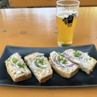 Dazu gibt es unter der Woche Snacks (z.B.: Griebenschmalzbrot 4,20 € auf der Basis von Treberbrot, einer schwäbischen Spezialität, bei der der beim Brauen anfallende Treber zugesetzt wird).
