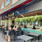 An einer Display-Wand kann an hier auch bereits das Angebot eingesehenen werden. Einen gewissen Bistro-Charakter aus der Filiale im "CITTI-Park" hat man also übernommen.