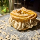 Weil es so selten ist, bestelle ich tatsächlich ein zweites Dessert: Der Paris-Brest erweist sich als klassisches Konditorhandwerk. Spritzgebäck, noch kurz erwärmt, innen luftig, außen knusprig, auch die untere Hälfte. Die Haselnusscreme überraschend leicht und erfreulich nussig.