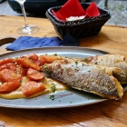Nächster Gang: Drei kleine Filets vom Wolfsbarsch.