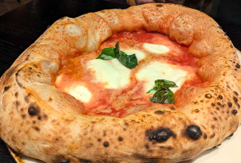 Es dauerte etwas länger als 60 Sekunden, aber nicht wirklich lang. Wir staunten nicht schlecht als uns die beiden aufgeplusterten Rundlinge serviert wurden. Unsere Napoli-Pizzen bestanden nämlich vornehmlich aus fluffigem Rand mit spärlicher „Leopardierung“.
