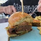 Bei den Burgern heißt es 180 g reines Beef aus hauseigener Herstellung . Alle Burger sind mit Brioche Bun, Salat, Tomate, Essiggurke, rote Zwiebeln, Cocktail/und BBQ Sauce. Zu allen Burgern servieren wir French Fries. Diese waren halt „Pommes“ mit Schale . Außen waren sie schön knusprig und nicht fettig. Im inneren hätten sie noch etwas gebraucht wegen uns, sie waren uns noch etwas matschig/knatschig. Salz war ausreichen vorhanden, bei manchen schon etwas zu viel davon.