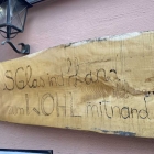 An den Wänden / Mauer gab es verschiedene Holzbretter mit schönen Sprüchen drauf.