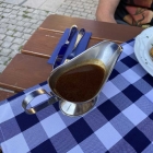 Was wir super klasse fanden dass die Soße extra serviert wurde. So kann man selber dosieren wie und wieviel man davon essen möchte. Sie hatte einen kräftigen, würzigen Geschmack und das Bier kam dezent durch.