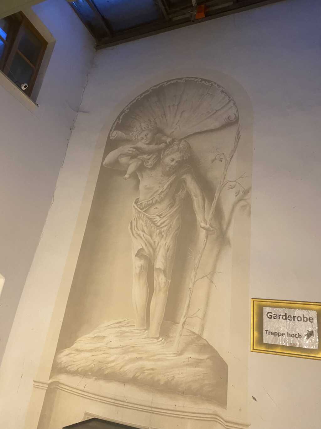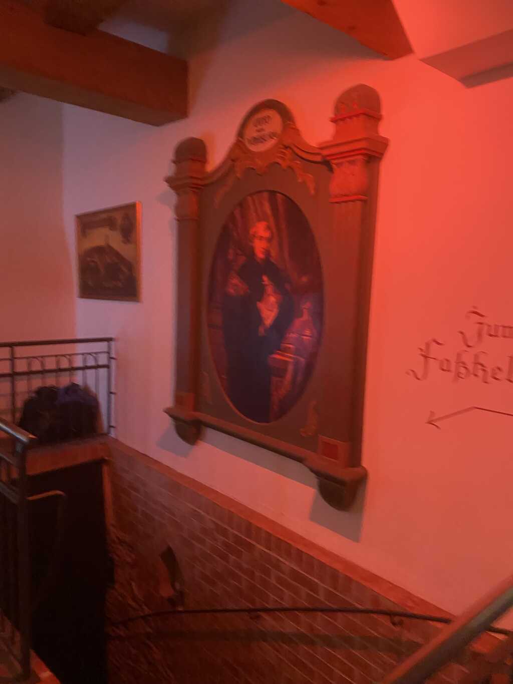 Im Treppenhaus Richtung Fassbar die sie auch betreiben gibt es auch ein paar Bilder, teils in der Mauer eingelassen.