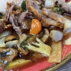 Beim anderen Gericht war die Ente auch super zart und saftig, auch die Haut schön knusprig. Reis war der gleiche auf dem Teller. Die Soße hatte hier auch einen würzigen Geschmack , richtig schön kräftig abgeschmeckt.