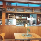 Ja man kennt sie noch, diese Einrichtungen. Vorderer Gastraum mit Theke, hinterer Gastraum mit versenkbarer halbhoher Glaswand, und anschließendem Nebenraum. Und alles in Eichenoptik. Aber hier nicht furniert, sondern echt.