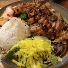 Currysauce, Gemüse, Reis, Koriander (für uns nicht!), Sesam, Fischsauce und Salat -