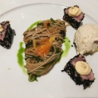 Weil meine Frau keinen Risotto mag, wurde uns ohne Umschweife die Pasta angeboten – eine Portion Linguine. Der Tomatenschaum wurde ebenfalls separat in einem Kännchen gebracht.