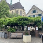 Nicht weit von Groll fand sich, auch am Dom gelegen, dieser Biergarten mit angeschlossenen Gasthaus. Der sah trotz nicht ganz so schönem Himmelfahrtstag Wetter ganz schnuckelig aus und auch die Karte gefiel uns bei erster Inaugenscheinnahme. Denn man rein in die gute Außenstube, der Innenbereich des Gasthauses kann übrigens auch gefallen. Das Haus atmet eine lange Gasthaushistorie. Die Weinkarte bot ein paar schöne Tropfen aus deutschen Anbaugebieten und so standen alsbald Wasser und zwei Weingläser auf dem Tisch.