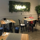 Die Tische stehen nicht zu eng. Die Stühle sind bequem. Für Kinder sind auch Sitze vorhanden. Insgesamt soll der Innenraum wie ein kleines Wohnzimmer wirken.