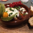 Und Shakshuka ist für mich der Klassiker aus dieser Küche. Der Name bedeutet wohl so viel wie „Mischung“, was bereits auf das Grundprinzip dieses Gerichts hinweist: Shakshuka vereint einfache Zutaten wie Tomaten, Paprika, Zwiebeln, Chili und Gewürze zu einer aromatischen Sauce, in der Eier langsam stocken sollen. Eine türkische Variante nennt sich wohl Menemen.