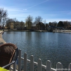 Aber zurück zum Restaurant . Herrlich am Wasser gelegen, in Sichtweite der Woltersdorfer Schleuse, die den Zufluss von und Schiffsverkehr zwischen Flaken- und Kalksee regelt, hat man neben dem Gebäude mit großem Saal und schon einigen Jahren auf dem Buckel einen herrlichen Garten.