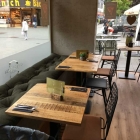 Der kleine Raum liegt direkt an der Fußgängerzone und hat dort auch im Freien Sitzplätze. Drinnen liegen links die Theke und am Ende die Küche. Am Fenster gibt es einige wenige Tische, einige Plätze sind auch Hochtische.