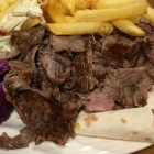 Ich wählte Nr. 13 (14,90 €) – Beef Döner Teller, mit belgischen Pommes frites und gemischtem Salat. Dazu wurden noch zwei Stücke Fladenbrot gelegt.