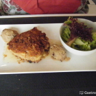 Leider war das Winter Event "Hirschrücken mit Schoko-Chilisoße, Bohnenkernen und Walnußkrusteln" zum Preis von EUR 24,50 ausgegangen. Also wählten wir von der Normalkarte, meine Frau "Cordon bleu mit Camembert und Birnen gefüllt, dazu Walnußstampf und kleiner Salat" (EUR 22,00) und ich "Schweinelendchen mit gefüllten Champignons und Kartoffelrösti" (EUR 21,00). Getrunken haben wir Pils und Apfelschorle. Als Gruß aus der Küche kamen Weißbrot und Currycreme; beides in Kombination sehr fein. Dann kam, ich erwähnte es bereits, lange nichts. Irgendwann dann aber doch; wäre im Brotkörbchen die doppelte Menge an Weißbrot gewesen, hätten wir auch das alles bis zum Eintreffen der Speisen verputzt gehabt. Unsere Gerichte waren hübsch angerichtet. Ein anstatt mit Schinken und Scheibenkäse mit Birnen und Camembert gefülltes Cordon bleu (natürlich vom Kalb) habe ich zuvor noch nie und nirgendwo gesehen. Die Kombination war aber sehr stimmig, es hat meiner Frau (und mir, ein Häppchen durfte ich kosten) sehr gut geschmeckt, zumal die Fleischqualität vom Feinsten war. Der Walnußstampf konnte, da geschmacklich etwas "flau", nicht so ganz mithalten und der kleine Salat war "schlicht" um nicht zu sagen einfaltslos. Insgesamt aber trotz der kleinen Ausrutscher bei den Beilagen doch eine sehr gute Wahl. Rundum zufrieden mit meinem Gericht bzw. davon begeistert war hingegen ich. Die Schweinelende in Topqualität und auf den Punkt gebraten, die mit kleinen Briochewürfelchen, Schinkenstückchen und zarte Salatstreifchen gefüllten Champignons ganz vorzüglich, die Kartoffelrösti einwandfrei und ein leichtes Sößchen "zum Reinsetzen"! Das war hohe Kunst und absolut auf Sterneküchenniveau. Unter Nichtberücksichtigung der langen Wartezeit hätte ich für den Bereich Essen, hätte das Gericht meiner Frau insgesamt die Qualität meines Gerichts gehabt, glatte fünf Sterne vergeben. Ich ziehe einen halben Stern ab, verbleiben immerhin gute viereinhalb.
