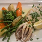 Das zugewiesene, ungünstig stehende Katzentischchen dürfen wir auf eigenen Wunsch hin noch einmal gegen ein etwas ruhigeres Exemplar mit Sitzbank tauschen, dann ist auch schon der Service mit den Karten zur Stelle und annonciert in ausgesuchter italienischer Hingabe die Tagesgerichte, ein bisschen augenzwinkernd gespielt, so dass man sich fragen muss, ob dies eine Vorstellung der Commedia dell Arte oder tatsächlich der Stil das Hauses ist. Aus der umfangreichen Karte wählen wir 1x Calamaria alla griglia (28,00 Euro) und 1x Insalata con Formaggio di capra e barbabietola rossa (14,50 Euro), obwohl die Gäste rundherum an ihren Pizze säbeln und ein grosser Pizzaofen in der hinteren rechten Ecke des Lokals eines der Hauptthemen des Hauses vorgibt.