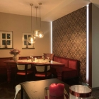Der Gastraum ist recht klein, im Erdgeschoss muss auch die Küche und die Theke ihren platz finden. Ein kleiner Wintergarten erweitert diesen Raum, im Obergeschoss stehen weitere Tische für Gesellschaften zur Verfügung.