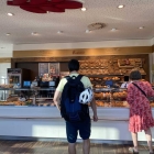 Wenn man am vorderen Eingang rein kommt befindet sich die Verkaufstheke. Hier muss man rechter Hand bestellen und linker Hand am Ende beim vor Ort essen abholen, wenn man es weiß.