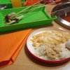 Alles ist in frischem Zustand und es macht Spaß. Man muss sich die Siebe für Nudeln teilen und so ist es ein kommunikatives Erlebnis.