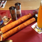 Auf dem Tisch lagen die Speisekarten als Rollen präsentiert: