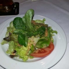 Der Beilagensalat sah erst mal ordentlich aus. Oben zwei Röschen Feldsalat, darunter aber auch viel Eisbergsalat. Geschälte Gurken, Tomatenscheiben, Krautsalat. Alles frisch, lecker, auch das leicht rosafarbene Fertigdressing war akzeptabel. Alles im Allem, guter Durchschnitt. 3*