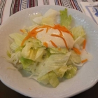 Noch während die Mädels an ihren Vorspeisen zu tun hatten, kam der Beilagensalat, welcher, typisch griechische Restaurants, zu den Hauptspeisen serviert wird. Allerdings war dieser sehr einfach und einfallslos. Etwas frischer Blattsalat, etwas eingelegter Weißkrautsalat und auf dem dicken Klecks des Dressings fanden sich einige wenige Karottenraspel wieder. Naja, da haben wir schon besseres gehabt.