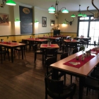 Innen im Saal ist Platz für weitere 80 Personen oder man nimmt Platz im kleinen Gastraum an hohen Tischen mit Barhockern bzw. auf einer Empore mit kleinen Tischen. Die Tischplatten hier sind aus hellem Holz und tragen braune Läufer. An den Wänden hängen Bilder vom Dom und ein Eckbild vom Amphitheater. Das Restaurant lebt vom Tourismus, von der optimalen Lage direkt neben dem berühmten Dom St Viktor. Die Toiletten sind barrierefrei zu erreichen.