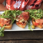 Meine bessere Hälfte entschied sich für "Ciabatta - Büffel - Serrano" (EUR 7,90), drei knusprige Scheiben Ciabatta mit Strauchtomaten, roten Zwiebeln, Rucola, mit Büffelmozzarella überbacken und on top sehr magerer Serranoschinken. Geschmacklich auch sehr gut, es passte genau, nur als Vorspeise eine zu große Portion (siehe auch Foto).