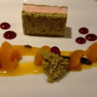 Wie gesagt zweimal stach ich zu. Das Parfait war auch mit den Beeren zubereitet, zumindest deutete die Farbe darauf hin. Das ganze sah aus wie ein Sandwich (wer kennt es nicht, das BIG Sandwicheis von Schöller). Nur dass das Parfait ganz rosa war und die „Waffel“ aus einer weichen Kürbiskernkruste war. Mein Highlight aber der Kürbiskernschwamm. Vom Geschmack her gar nicht mal so aber die Konsistenz wunderbar (wie geht das??) Die Aprikosen habe ich nicht probiert. Sahen aber sehr gut aus!