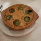 Meine Frau hatte Lust auf eine Vorspeise und wählte die Schneckenpfanne für EUR 8,90; als Hauptgericht nahm sie das Skreifilet zu EUR 25,90 und als Nachtisch Pannacotta mit Himbeersoße für EUR 7,90. Hauptgericht und Dessert hatten auf der Schiefertafel mit den Tagesempfehlungen gestanden, nur die Schnecken kamen von der Normalkarte. Ich verzichtete auf eine Vorspeise; Schnecken hatte ich zuletzt hier gegessen, Froschschenkel esse ich seit langem nicht mehr,die hier sehr schmackhafte Bouillabaisse ist mir von der Portionsgröße her als Vorspeise zu mächtig und die Austern gibt es nur im Sechserpack. In Sachen Hauptgericht und Dessert sollten es nicht meine Hauptfavoriten Kalbsnierchen und Crêpe Suzette sein. Stattdessen wählte ich Confit de Canard (EUR 21,90) und Münster mit Kirsch flambiert (EUR 7,50).