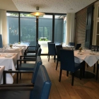 Der Gastraum ist zweigeteilt, innerhalb des alten Gebäudegrundrisses ein Gastraum mit etwas rustikalerer Einrichtung, passend zum historischen Gebäude. Neben diesem ein Anbau mit verglasten Seitenwänden, damit hatte dieser eine gewisse Wintergartenatmosphäre.