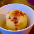 Im ersten Dessert findet sich auf einem Löffel etwas kalte Bratapfelcreme, separat dazu eine Pastinaken-Birnencreme mit gerösteter Senfsaat. Am Tisch wird ein warmer Sud von Zimt, Apfel und Muskatkürbis angegossen, der die Creme im Löffel schnell viel geschmeidiger werden lässt. In der Nase und im Mund machen sich erste weihnachtliche Gefühle breit.